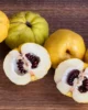 الثمار صفراء تشبه التفاح الصغير ويصل قطرها إلى 5 سم، ولها رائحة تشبه رائحة الأناناس. طعم الفاكهة يشبه طعم الحمضيات ممتزج بطعم الأناناس والفانيلا والعسل. تستهلك الثمار طازجة وفي الطبخ وصنع الحلويات والمربى والعصائر وأيضاً وأيضاً تشتهر في أستخدامها في الشاي.