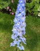 الأزهار لونها أزرق فاتح وكبيرة يبلغ قطرها 4-7 سم وتتجمع في أبراج طويلة.