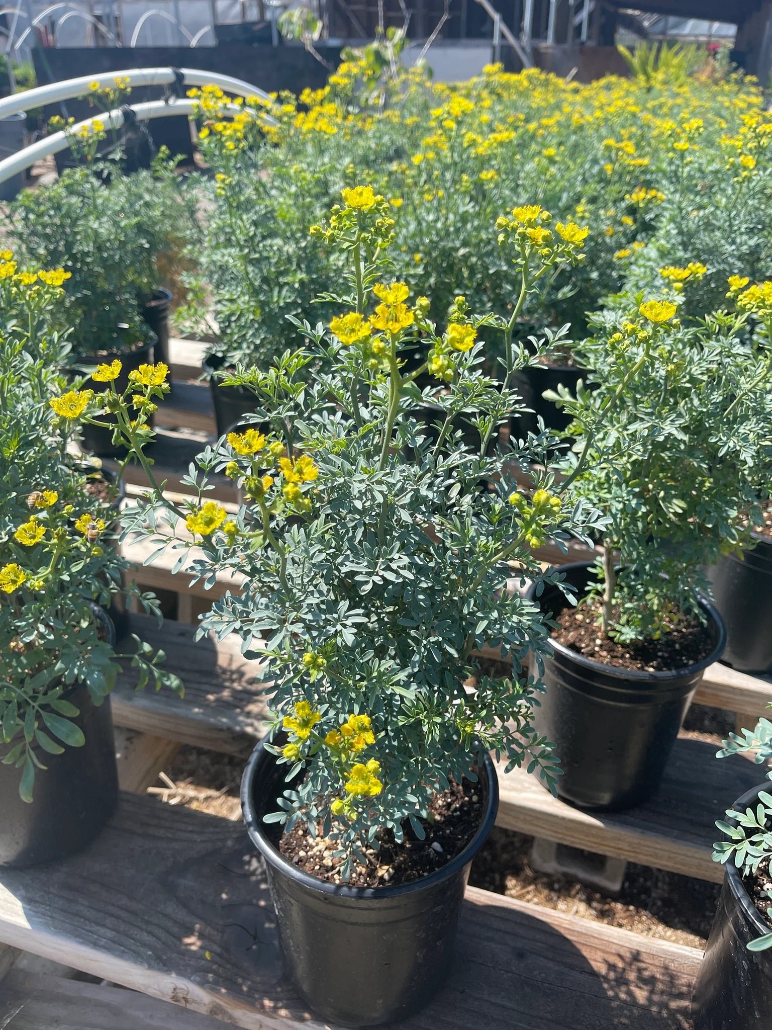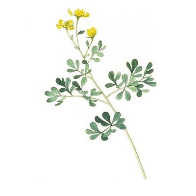 فهو نبات عشبي معمر يتراوح طوله بين 40 – 100 سم، له ساق متخشب وأفرع تحمل أوراقاً مركبة كثة ذات لون أخضر تميل إلى الزّرقة، تحمل الأفرع في نهاياتها مجاميع من الأزهار ذات لون أصفر ولها رائحة قوية عطرية ويكتمل إزهارها في آخر فصل الصيف.