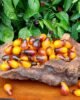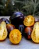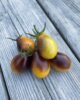 طماطم متوارثة كرزية فريدة وجذابة، على شكل إجاص، برتقالية مشمسة، مع أكتاف أرجوانية نيلية عند النضج. ثمارها بحجم ثمار الكرز، طولها حوالي 2.5 سم ووزنها حوالي 10 غرامات. تتميز بطعم حلو وخفيف، متوازن، ورائحتها زكية. هذا الصنف غير محدود النمو (ينمو بطول 1.8 متر) يُنتج ثمار وفيرة – 600-1000 ثمرة لكل شجيرة، وتُجمع في عناقيد كبيرة. تم إنتاج هذا الصنف بواسطة الدكتور “جيم مايرز” في جامعة ولاية أوريغون الأمريكية.