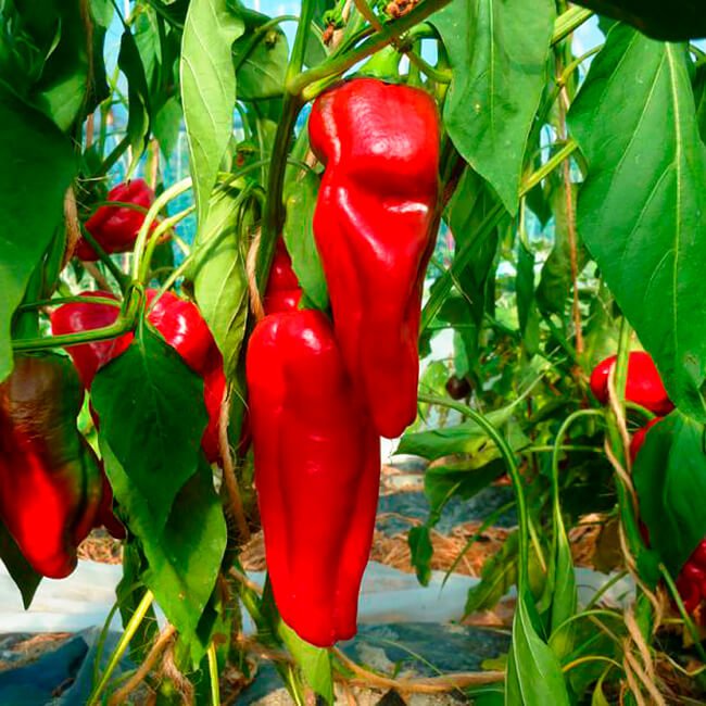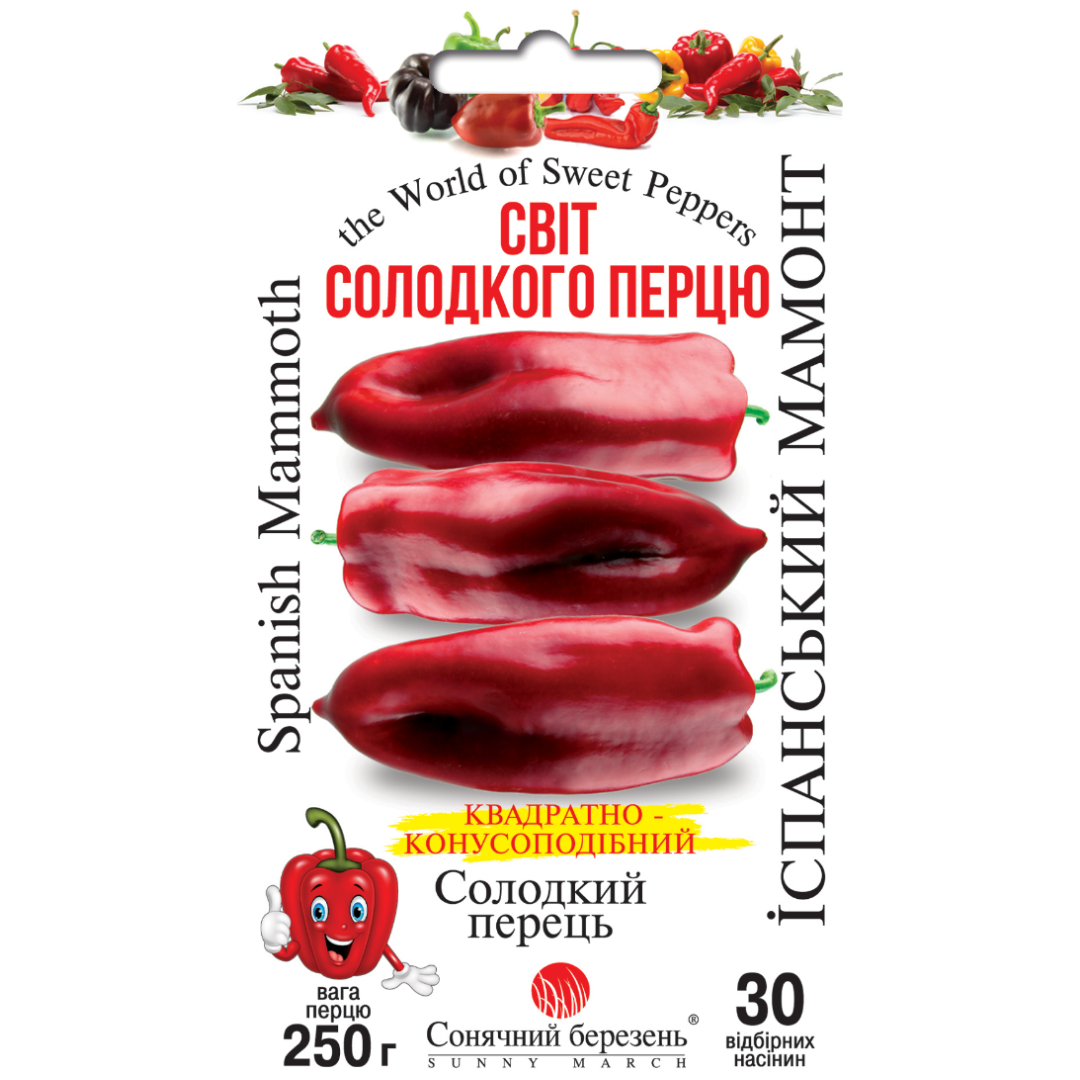 أنه صنف إسباني متوارث وقديم للغاية والذي ظهر لأول مرة في أسواق إسبانيا وجنوب فرنسا في عام 1859م. وفي وقت لاحق من هذا القرن، أصبح أكثر انتشارًا في أسواق باريس. يمكن أن يصل طول هذا الفلفل إلى (20 سم) وقطره (12) سم)، ولهذا يطلق عليه اسم الماموث الإسباني. إنه فلفل مشهور جدا في سوق الطهي الفرنسي. إنه حلو جدًا. يحتوي هذا الصنف المتميز على ثمار خضراء حلوة ومقرمشة بشكل لذيذ، مع لمسة من اليانسون في الطعم، وعندما تنضج بالكامل إلى اللون الأحمر الداكن، تتكثف لذتها ورائحتها. الفلفل ضخم، ثلاثي الفصوص، ذو طرف مدبب، وزنه حوالي 250 جرام، وجدرانه سميكة وكثيفة. الفلفل حلو ورائع لجميع الأغراض. الشجيرة قوية ويصل ارتفاعها إلى حوالي 70 سم، وأوراقها جيدة. وهي متوسط فترة النضج حوالي 80-90 يوم من زراعة الشتلات.