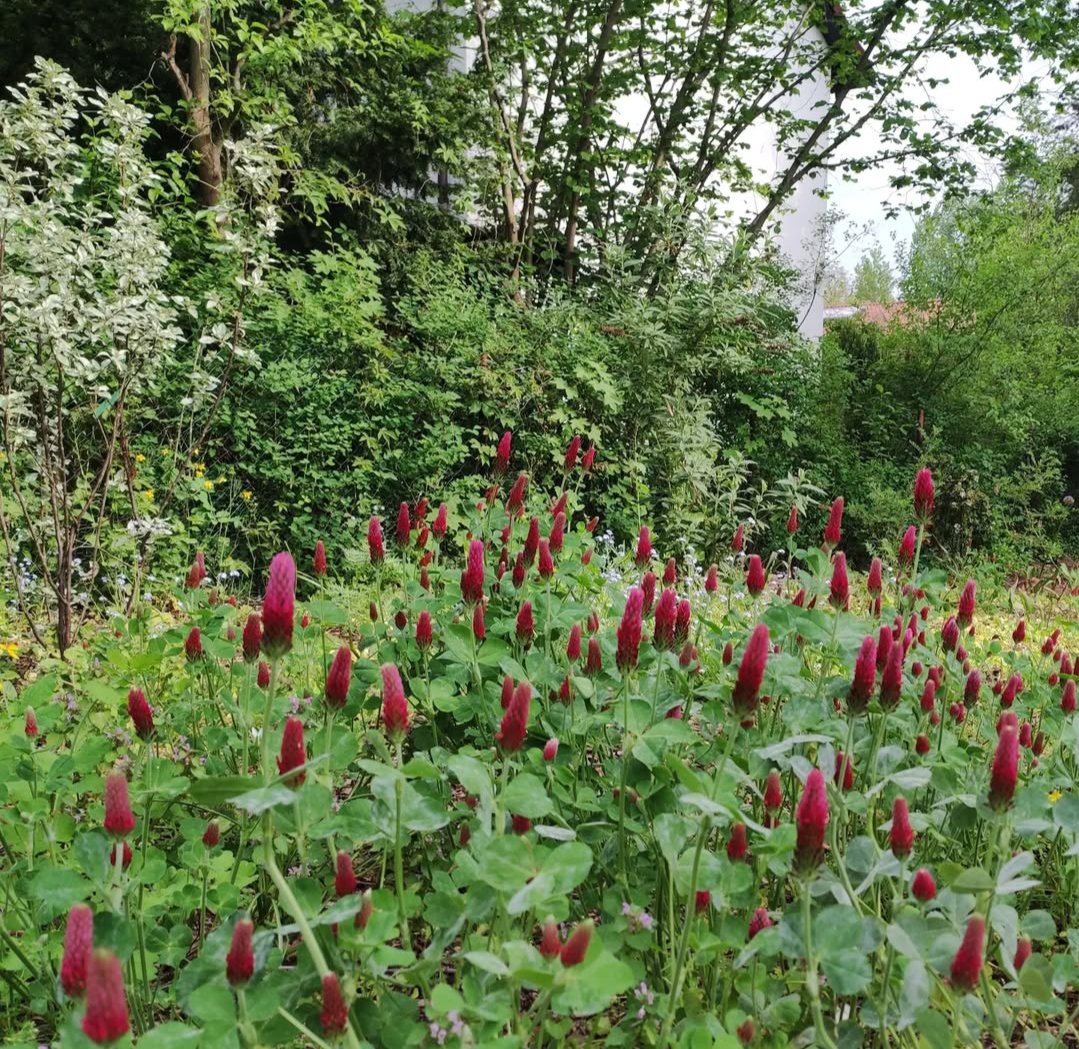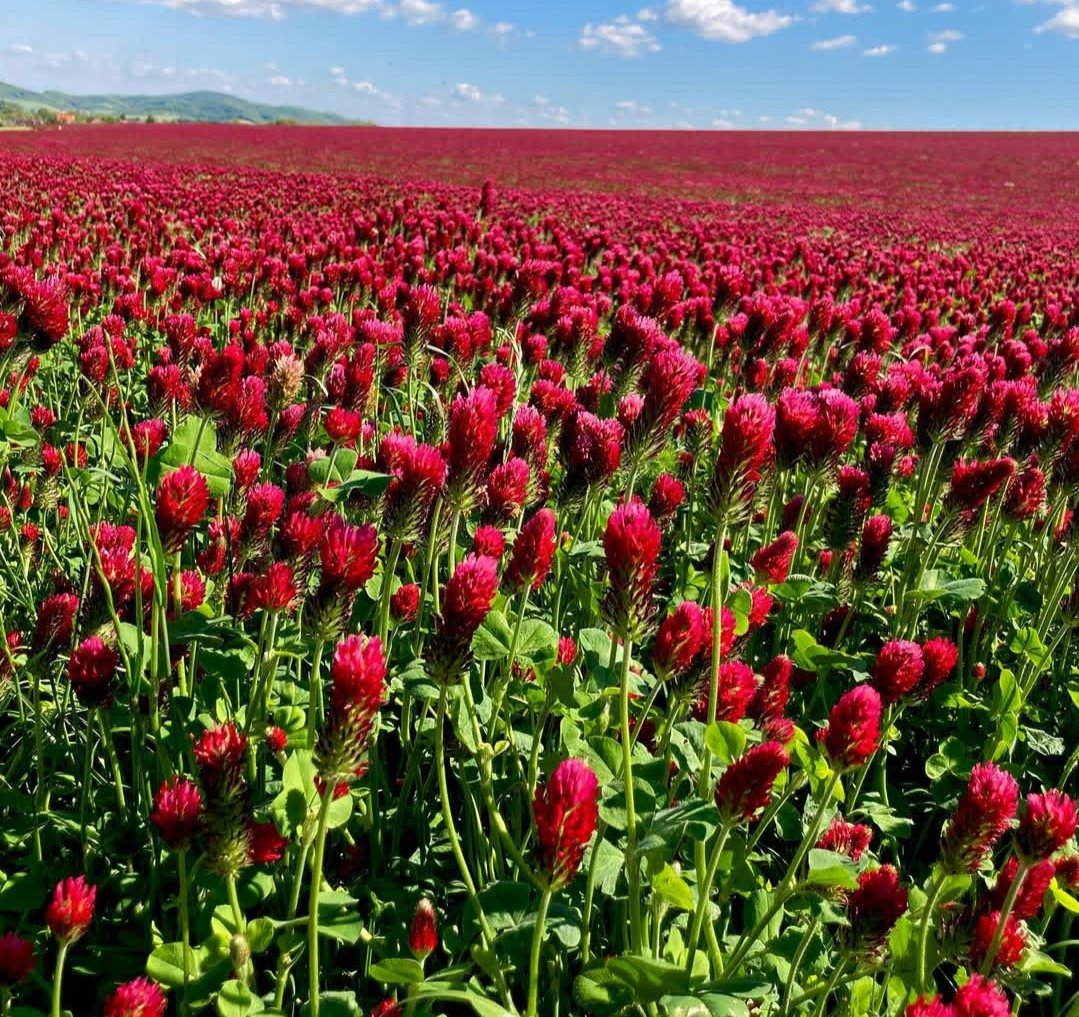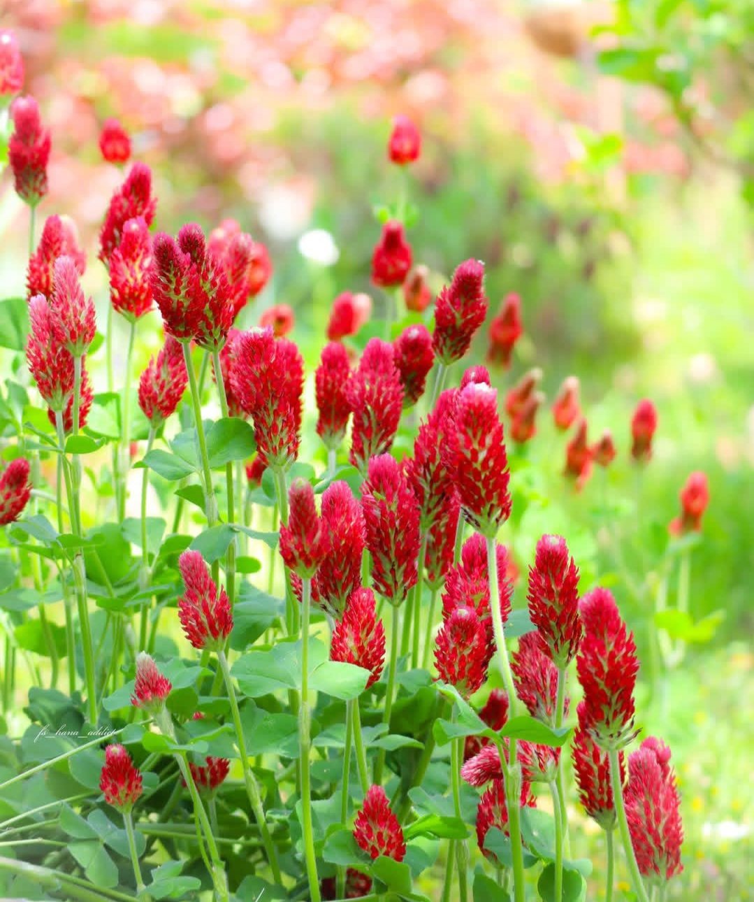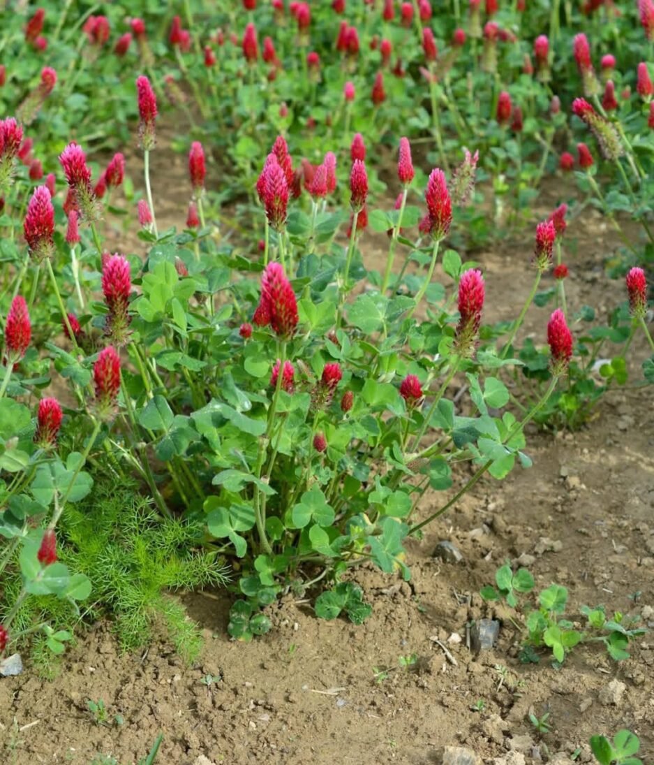 ينمو هذا العشب السنوي المستقيم إلى ارتفاع 20-50 سم ، ويكون غير متفرع أو متفرع فقط عند القاعدة. الأوراق ثلاثية الوريقات ذات سويقة طويلة. الأزهار قرمزية حمراء اللون ممدودة يبلغ ارتفاعها 3-5 سم وعرضها 1.5 سم.