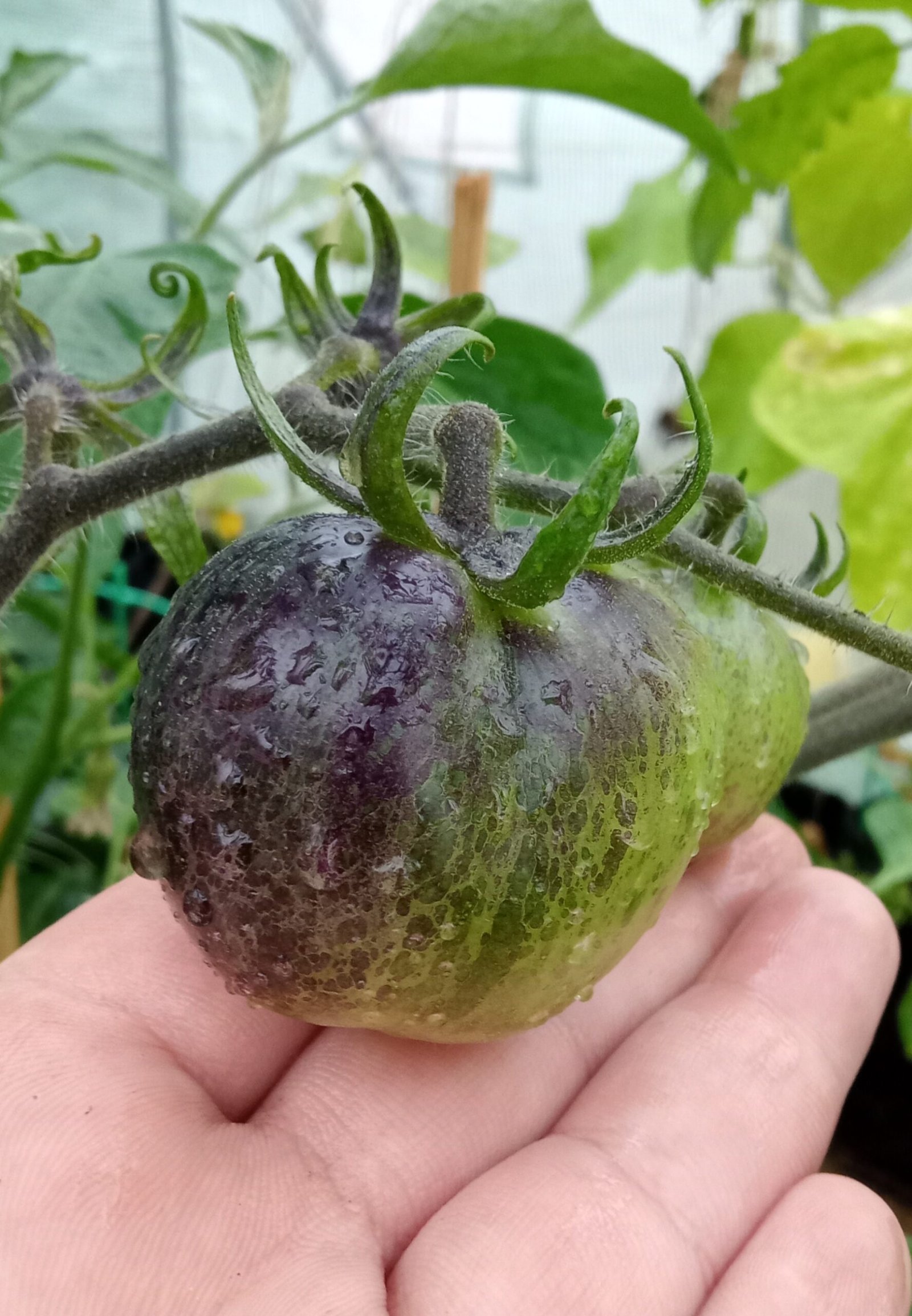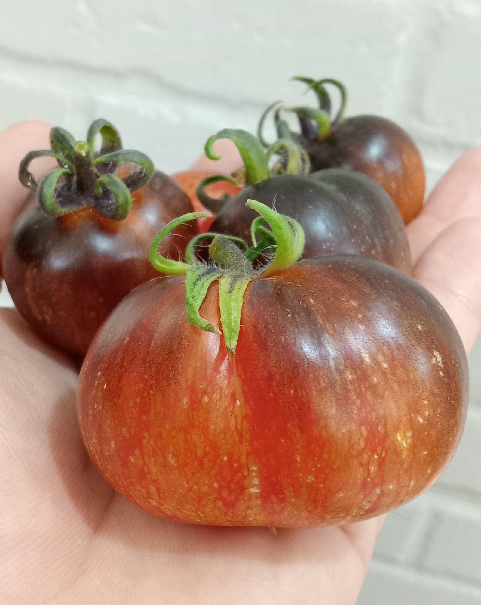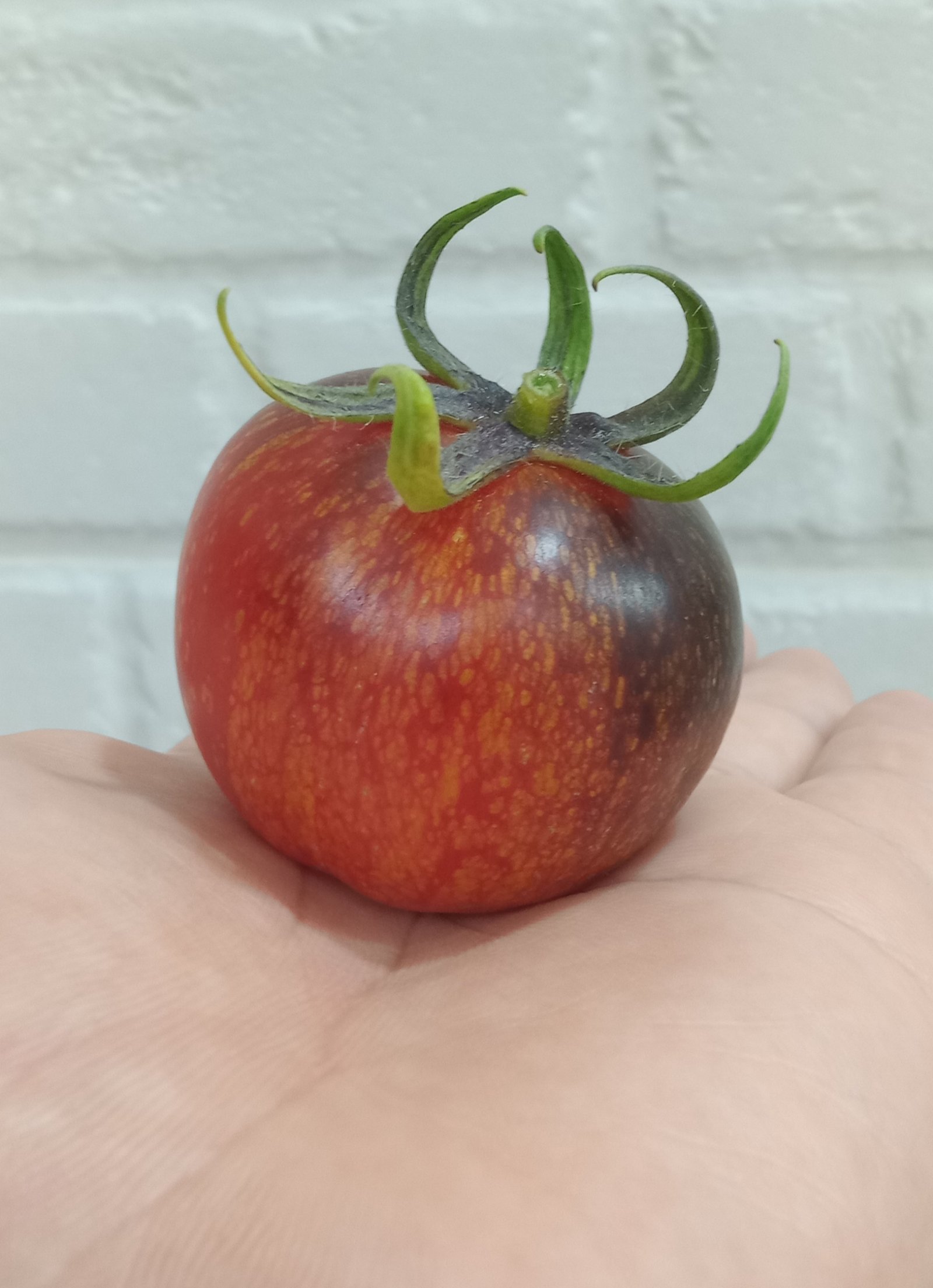 أنه صنف أمريكي متوارث فريد من نوعه لشكله الغريب وطعمه الأستثنائي. الثمار كروية الشكل ، ذات لون أحمر مع نقط وتصبغات سوداء وبنفسجية تعطي الثمار مشهد الفضاء الشاسع. وزن الثمار تصل إلى 90-120 جم. واللب كثيف ولذيذ مع رائحة مميزة منعشة. الصنف غير محدود النمو والأثمار. حيث ينمو بأرتفاع 180 سم. ويزرع في الأراضي المفتوحة والبيوت المحمية.