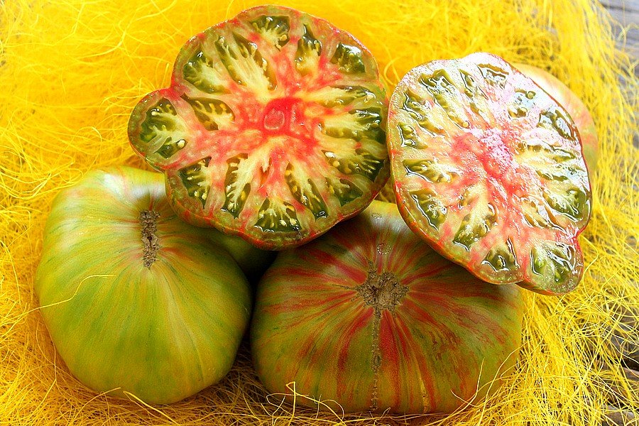 صنف نادر متوارث من إيطاليا. حيث أنه غير محدود النمو وينضج في منتصف الموسم. الشجيرة يصل ارتفاعها إلى 150 سم. الثمار مسطحة مستديرة، خضراء اللون مع خطوط عنابية عند النضج، ويزن وزن الطماطم الواحدة 250-300 غرام. اللب أخضر اللون مع بقعة حمراء في المنتصف، كثير العصير، ويجتمع مذاقها بتناغم بين حلاوة الفاكهة وحموضة الطعم. لأفضل النتائج قم بتشكيل النبات على ساقين.