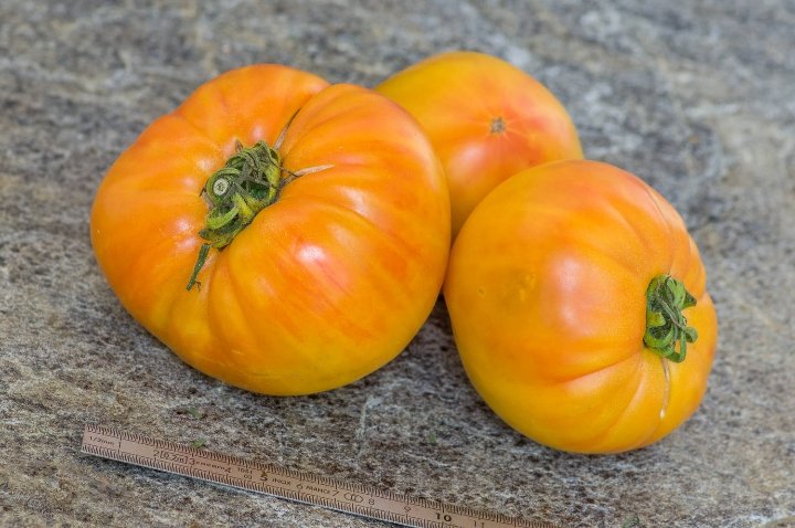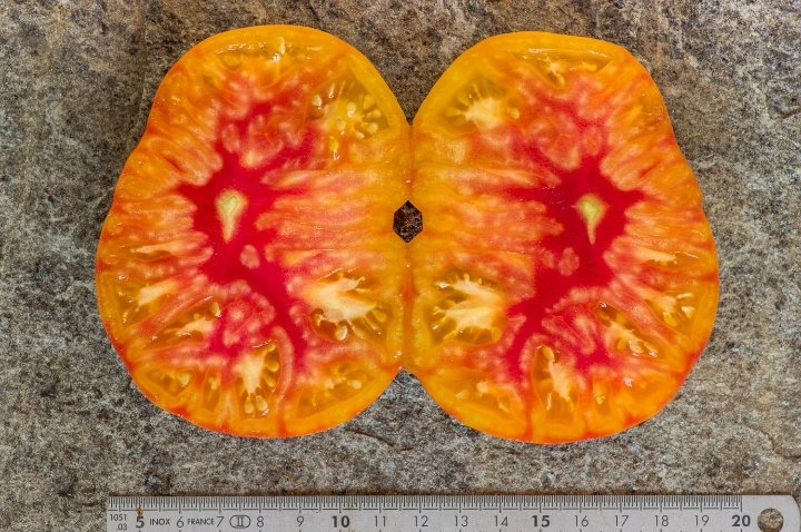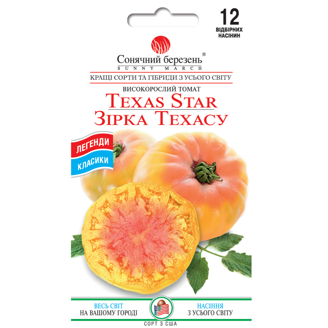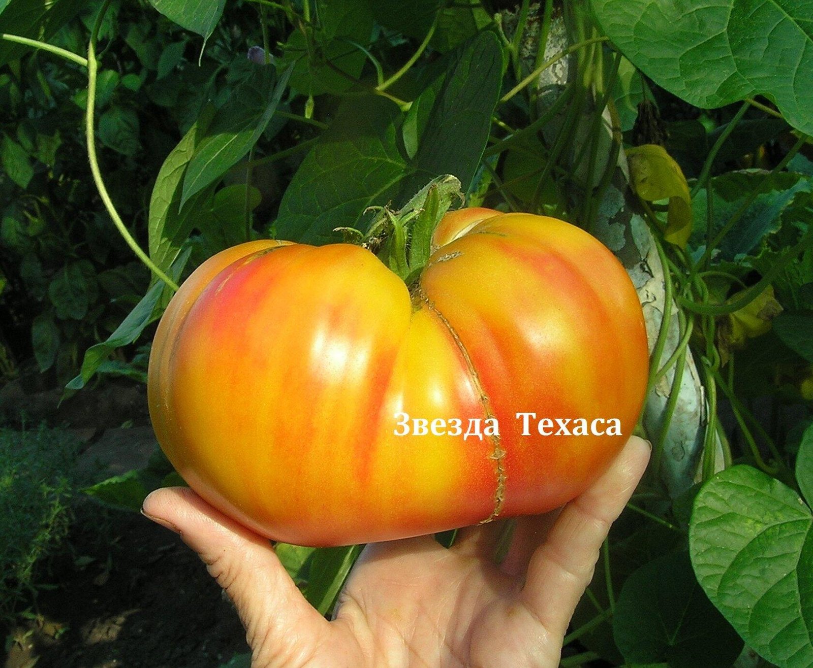 صنفٌ تراثي متوارث قديم منذ عام 1980م، وهو فخر لولاية تكساس الأمريكية. الصنف غير محدود النمو والشجيرة كبيرة ذات أوراقٍ عادية، يبلغ ارتفاعها حوالي 1.8 متر، تُنتِج طماطمً كبيرةً ثنائيةَ اللون، وزنها من 400 إلى 800 غرام، صفراء اللون مع خطوط حمراء ورخامية من الداخل والخارج، وعادةً ما تحتوي على نجمةٍ حمراء على المخروط السفلي من الثمار. أنها طماطم من نوع “شرائح اللحم البقري” فهي مستديرةٌ ومسطحة، مع أخاديد عميقة في الأعلى. تغطي القشرة الرقيقة والطرية لبًا متماسكًا كثير العصير، حلوًا جدًا، ومتوازنًا في الحموضة، بنكهة طماطم رائعة وبذور قليلة. أنها خيار جيدٌ للسلطات الملونة، وصلصة الطماطم، والسندويشات المقطعة إلى شرائح سميكة، أو لتناولها طازجةً. تُنتِج هذه الطماطم صلصة طماطم “نجمة تكساس” اللذيذة لمكرونة تكساس. يبدأ الصنف في النضج بعد 85 يومًا من زراعة الشتلات. يُعطي أنتاج وفير في النصف الثاني من الموسم. الصنف متحمل للجفاف.